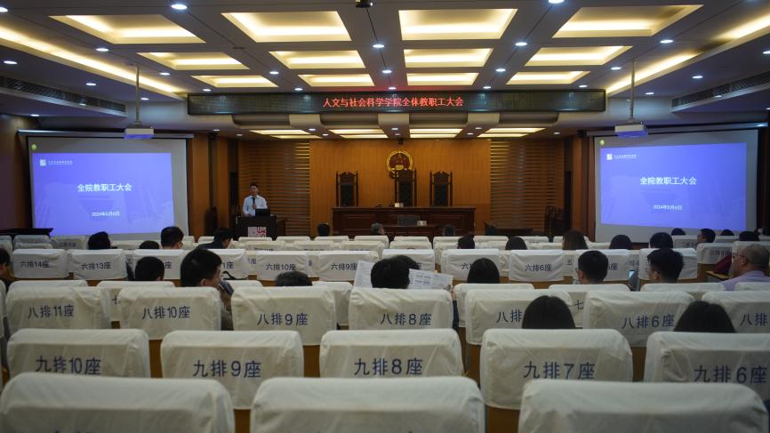 2024年5月6日,av中文 召开全院教职工大会,传达学校重要会议精神,并对本科教育教学审核评估、学位点周期性合格评估等重要工作进行部署。会议由院长高志宏主持,全体院领导班子成员、教职工参加会议。
