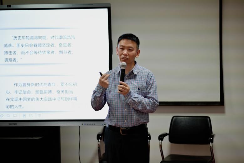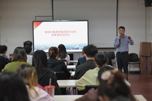 董俊峰通过询问在场同学中国梦的含义引入了“新时代推进中国式现代化的青年使命与担当”这一主题,带领学生共同回顾建党百年的变化。从中国特色社会主义进入新时代、推进中国式现代化、青年大学生的使命与担当三个层面,为同学们解读中国式现代化的若干问题、历史逻辑和科学内涵,帮助同学们进一步深化对党的认识,深刻理解党的最新理论成果,筑牢信仰基石,夯实思想基础,并且鼓励同学们勇于肩负起强国建设、民族复兴的历史重任,做一个有理想、有本领、有担当的新时代青年。
