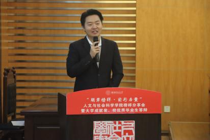 活动分为三个篇章,第一篇章“逐梦:不负韶华,以拼搏凝聚力量”,参与大学成就奖、校优秀毕业生答辩的候选人航空工业奖学金获得者、2020级政治学与行政学专业本科生鲁浩翔,国家奖学金获得者、2020级法学专业本科生王思捷,年度特别嘉奖获得者、2020级法学专业本科生李欣怡三位同学依次发言,分享在学院的四年成长经历以及未来的发展规划,透过他们的分享,四年逐梦痕迹清晰可见,为台下的学弟学妹们播下了梦想的种子。