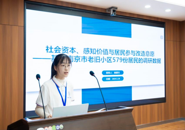 在av中文 公共管理系鲁兴虎老师的指导下,行政管理专业大三本科生姚郡兰、何雨同学的论文《社会资本、感知价值与居民参与改造意愿——基于南京市老旧小区579份居民的调研数据》成功入选本年度论坛,姚郡兰同学受邀参会并做论文报告。