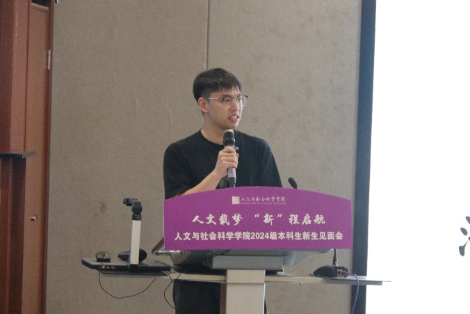 班主任代表王小何和本科生导师代表王媛分别为新同学们送上了大学的祝福和期许。王小何结合自身的学习和成长经历,以亦师亦友的身份鼓励同学们培养爱读书的好习惯。王媛以一首打油诗幽默诙谐地表达了对新同学由衷的欢迎和祝福,她表示本科生导师制是我们学院特色的教育教学制度、鼓励同学们要主动和本科生导师沟通交流,让本科生导师真正为我们的大学学习和成长保驾护航。张浩书回顾了分享了自己在南航的成长经历和身为职场人的体会与感悟,他结合自身的奋斗历程鼓励学弟学妹们珍惜在校时光,努力学习、努力生活,早日为成为一名合格的法政英才。
