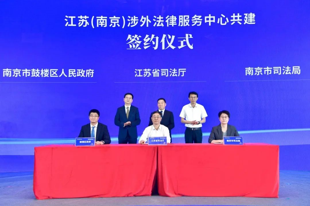 省司法厅、市司法局与鼓楼区政府三方签约共建江苏(南京)涉外法律服务中心,南京大学、东南大学等14所高校法学院启动涉外法律高校联盟,12家涉外法律服务中心单位正式入驻,签约项目24个。