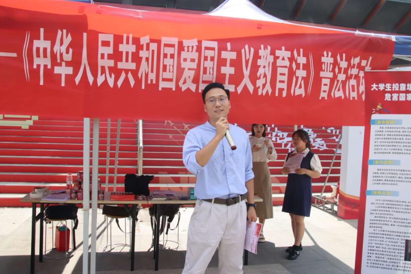 为庆祝中华人民共和国成立75周年,加强新时代高校爱国主义教育,传承和弘扬爱国主义精神,进一步提升我校师生的法治思维和法治素养。9月29日下午,av中文 在将军路校区东区体育馆前举办“爱国铸魂,法治护航”《中华人民共和国爱国主义教育法》普法活动。