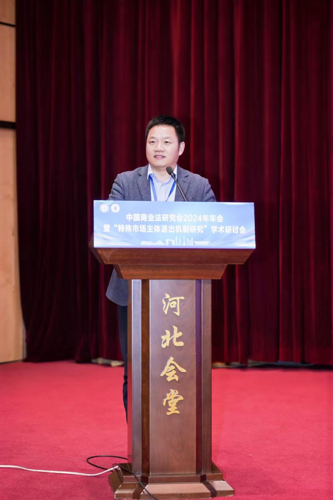 2024年12月20-22日,中国商业法研究会2024年年会暨“特殊市场主体退出机制研究”学术研讨会在河北省石家庄市举办。会议由中国商业法研究会主办,河北师范大学承办。中国法学会副会长、中国社会科学院学部委员陈甦,河北省政协副主席、河北省法学会常务副会长何秉群,河北省人大常委会法工委副主任袁任新,河北省高级人民法院副院长王利军,河北省检察院党组成员、副检察长任国强,河北省司法厅党委委员、副厅长乔新月,中国法学会研究部二处处长孙立军,中国商业法研究会会长、北京大学法学院教授甘培忠,河北师范大学党委书记黄晟等出席会议。来自北京大学、清华大学、浙江大学、中国人民大学、中国政法大学、日本国立冈山大学、av中文 等国内外高等院校,有关法院、检察院、律师事务所等实务部门代表300余人参会。av中文 院长高志宏教授及法律系熊敬副教授、陈苏豪副教授、郑文革老师参会。
